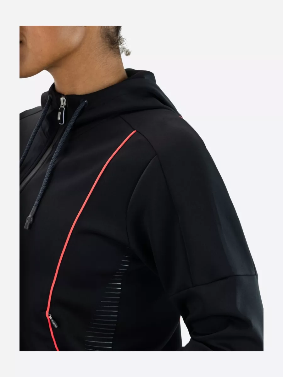 Dit jack is perfect voor sporters die waarde hechten aan bewegingsvrijheid en comfort. De capuchon voegt een extra laag van veelzijdigheid toe, waardoor het jack geschikt is voor verschillende weersomstandigheden. Of je nu onderweg bent naar de training of gewoon een actieve dag hebt gepland, dit jack biedt de juiste balans tussen stijl en functionaliteit.